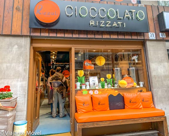 É uma chocolateria/sorveteria, e não fica na Corso Italia, mas na rua de baixo, bem pertinho. Esse foi um lugar que achamos por acaso. Já tínhamos caminhado por toda a extensão da Corso Italia nos dois sentidos e resolvemos explorar a rua de baixo. E então passamos em frente a esse lugar tão bem decorado e enfeitado que nos chamou a atenção.