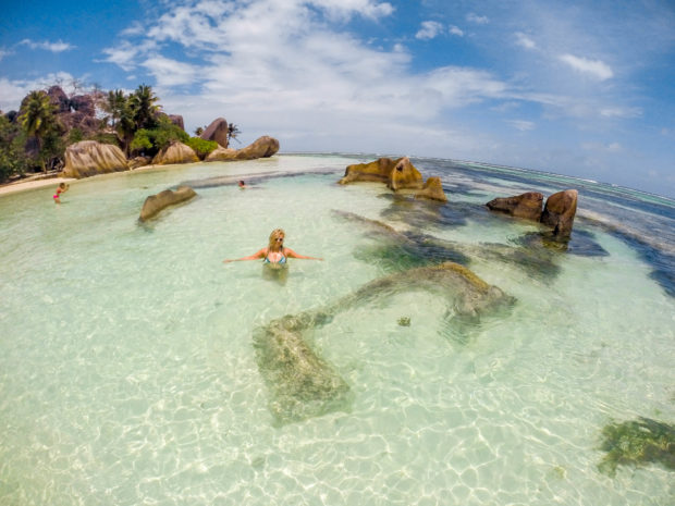 Outro motivo que torna a ilha inesquecível é o visual das praias. Mas uma em especial é de tirar o fôlego: Anse Source D’Argent. Simplesmente a praia mais bonita do mundo segundo a National Geographic! Não há como descrever, apenas olhar e sentir. Aquela areia branca, aquele mar cristalino, aquela paisagem de pedras!!!! Tudo é de marcar para o resto da vida mesmo!
