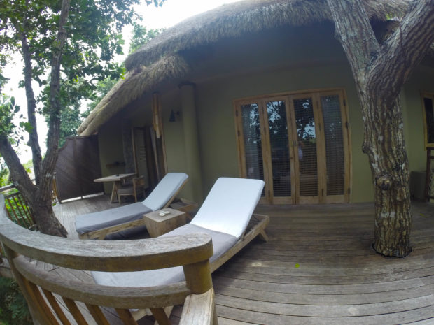 A suíte em que ficamos foi algo inesquecível. A área dos quartos fica atrás da recepção, subindo uma encosta, entre as árvores, em alguns pontos bem íngrimes até, mas não se preocupem, eles levam e trazem os hóspedes o tempo todo nos carrinhos de golfe. Nosso apartamento era praticamente uma casa na árvore :):):). Tinha realmente duas árvores cujos troncos atravessavam o chão da varanda, por isso parecia que estávamos em cima das árvores rsrsrs.