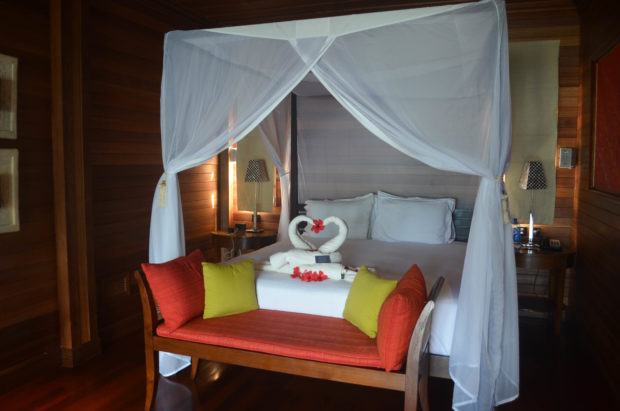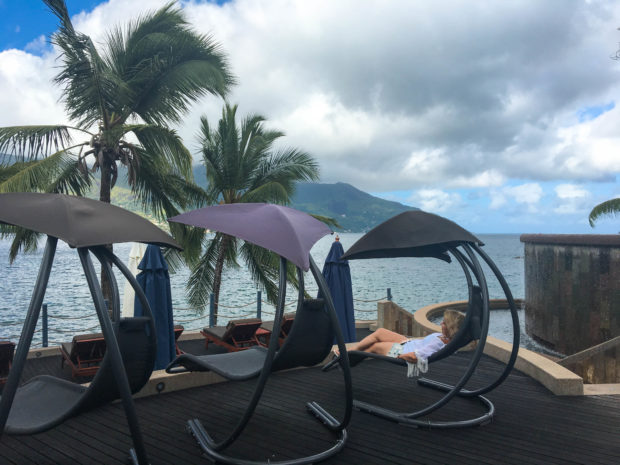 Na segunda ilha de nossa viagem ficamos no Le Domaine L’Orangerie Resort and Spa. Simplesmente maravilhoso!! Nosso apartamento ficava no alto, quase uma casa na árvore. 🙂 🙂 🙂