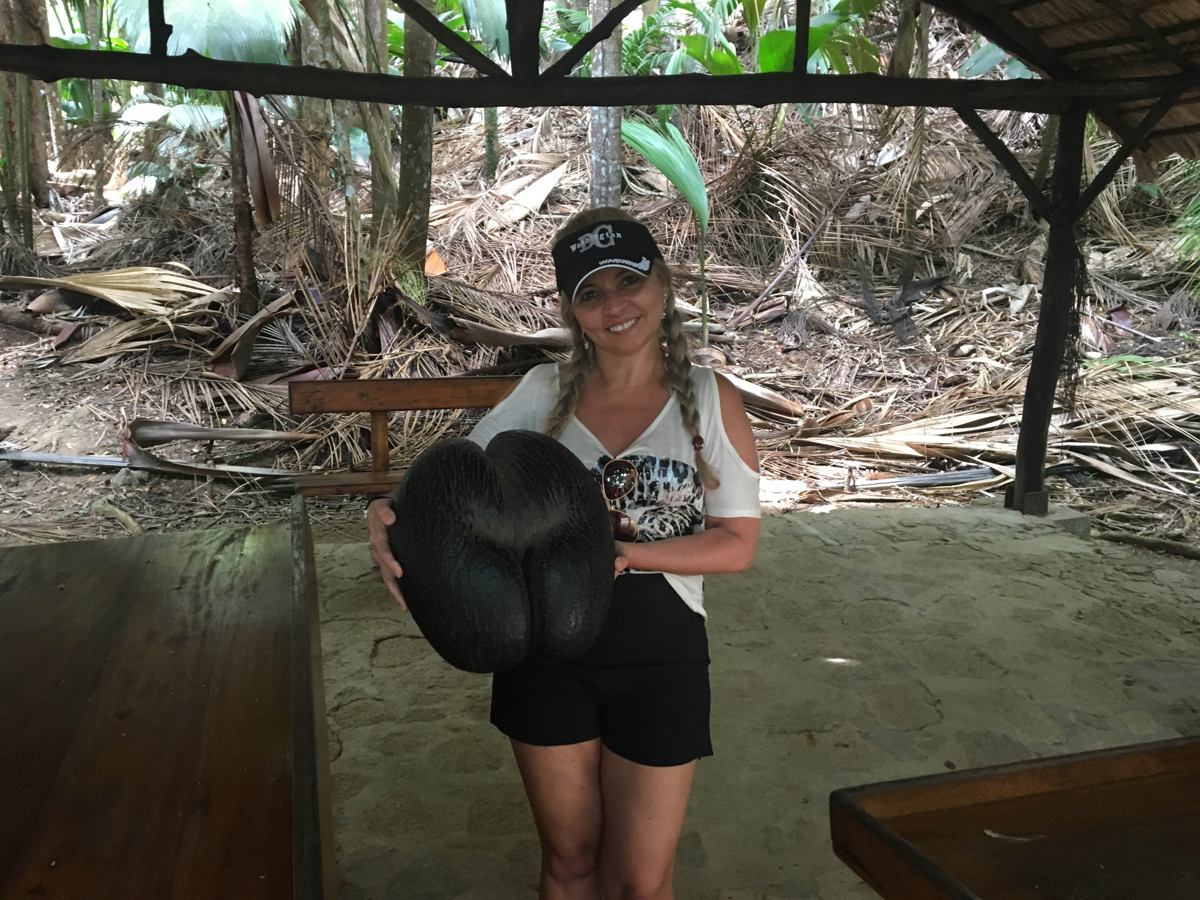 É lá que se encontra o Coco de Mer, a maior castanha do mundo!! Essa castanha é famosa no mundo inteiro por ter o formato de um quadril feminino, todos tiram a tradicional foto com ela pois só tem lá em Seychelles 🙂 🙂 :). A entrada no parque é paga pois é uma área de proteção ambiental onde se encontram muitas espécies da fauna e flora chamadas endêmicas, ou seja, espécies que não existem em outros lugares do mundo, apenas ali, como o Papagaio Negro.