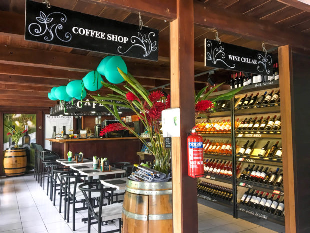 Em seu interior há um café, onde você saboreia uma das opções de cafés que eles servem, ou um suco natural de laranja delicioso, lê um jornal local, numa temperatura agradável, lá fora um forte calor e dentro, o ar condicionado amenizando, e uma musiquinha de fundo. Enfim, muito agradável mesmo, recomendamos. é só seguir pela estrada que circunda a ilha, fica na estrada mesmo, na costa oeste, no distrito de Grand Anse.